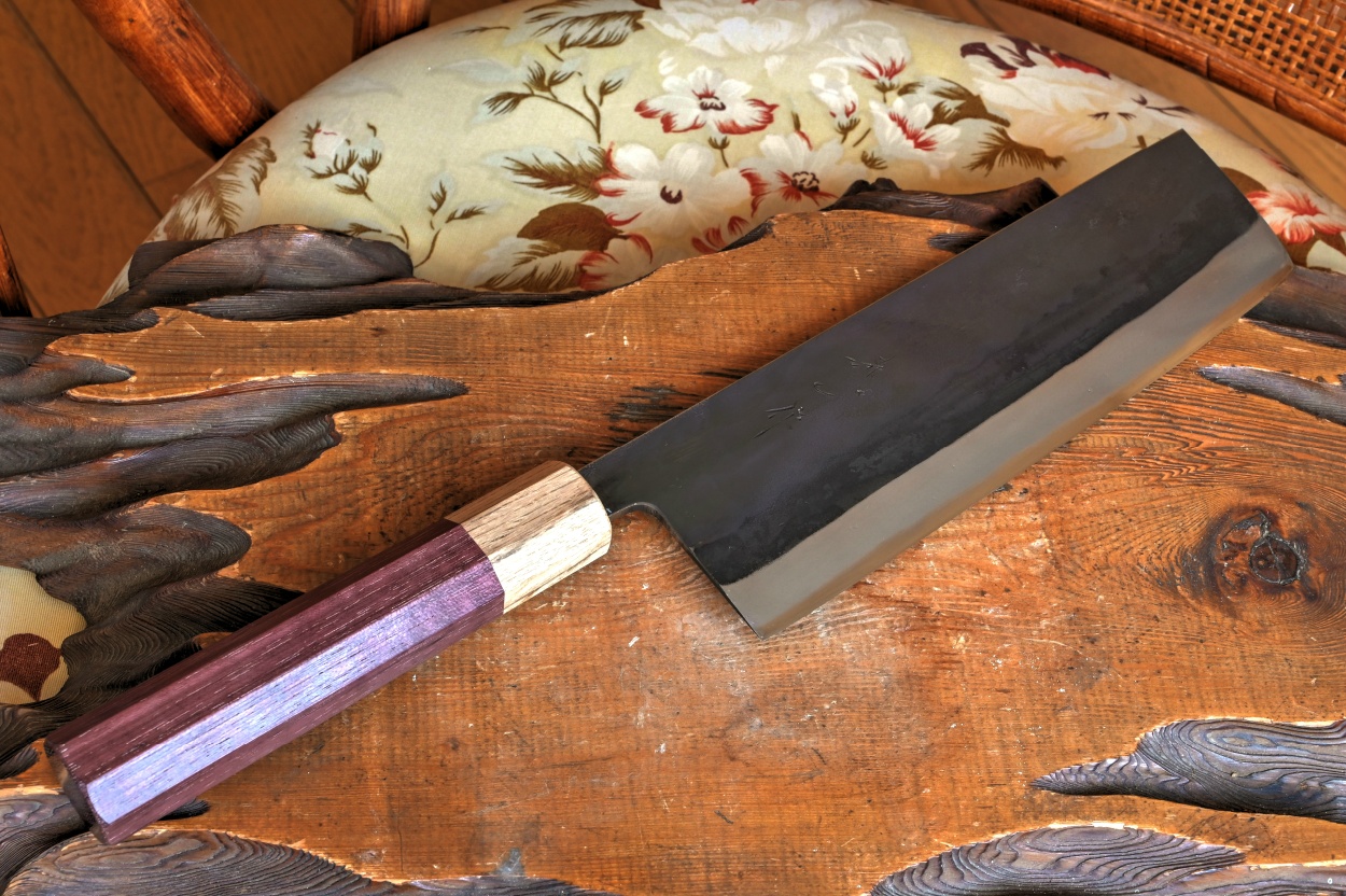 - #4 Kurouchi Nakkiri knife 210mm: Purple heart.