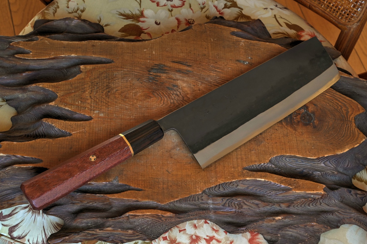 - #4 Kurouchi Nakkiri knife 210mm: Purple heart.