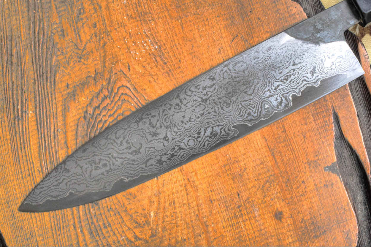 - #16 Kurouchi Gyuto knife 200mm: Iron clad blue.